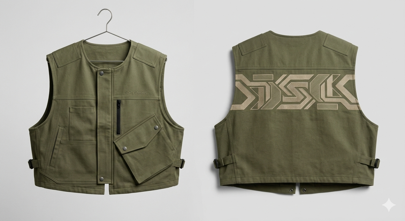 Chaleco cargo corto en lona resistente color verde oliva, con corte boxy y oversize
