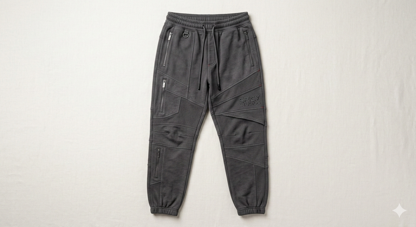 Joggers streetwear en gris carbón con corte relajado y efecto de capas superpuestas que aporta textura y profundidad visual.