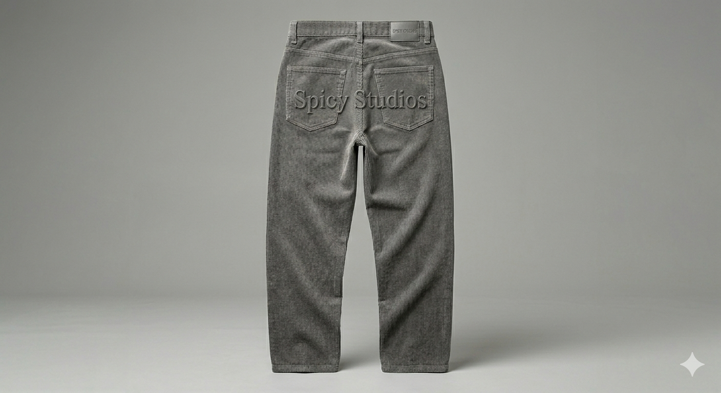 Pantalones de pana gris con corte recto y estilo contemporáneo, diseñados para combinar comodidad y estética streetwear
